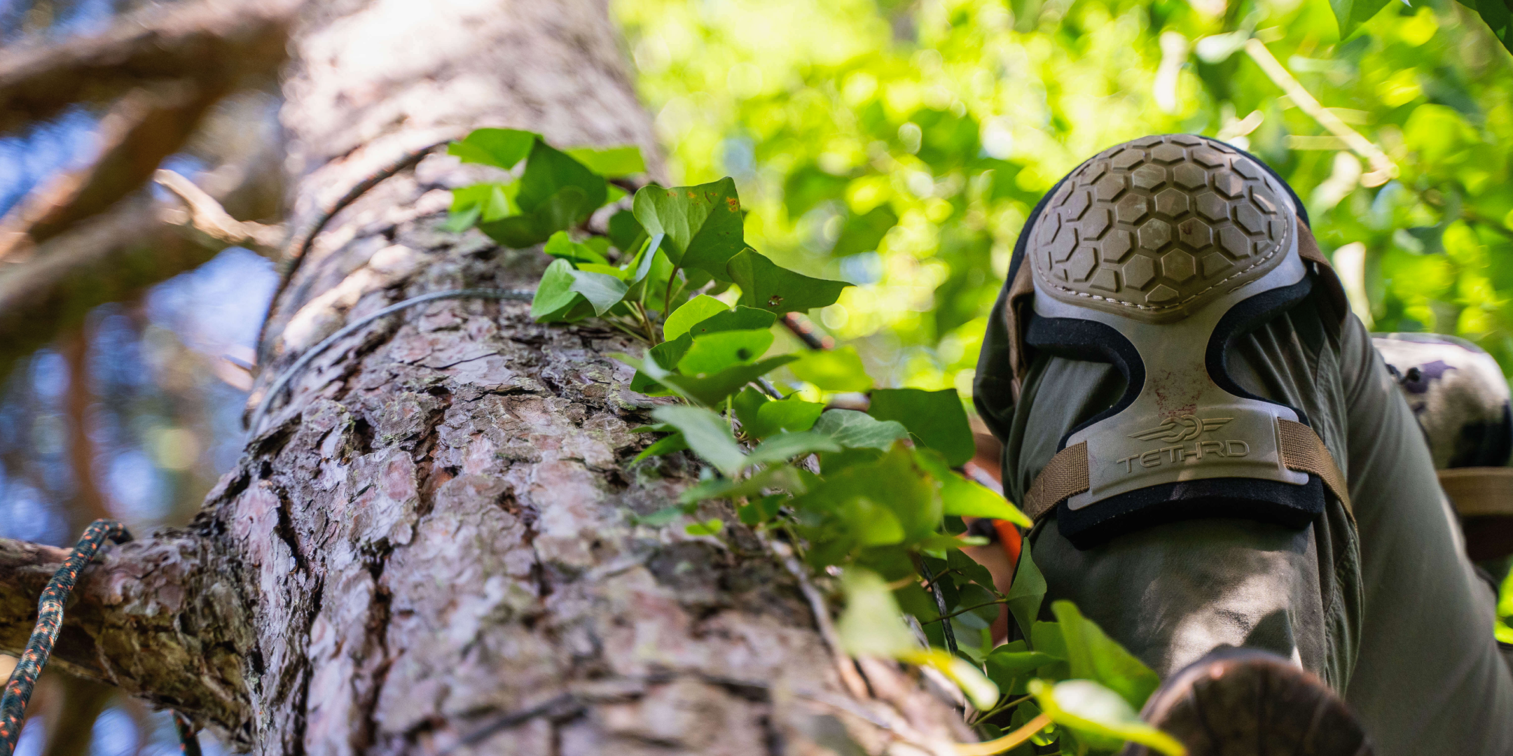 The Lineman Belt safely connects you to the tree while you climb, and the Tree Tether safely connects you once you reach your platform.