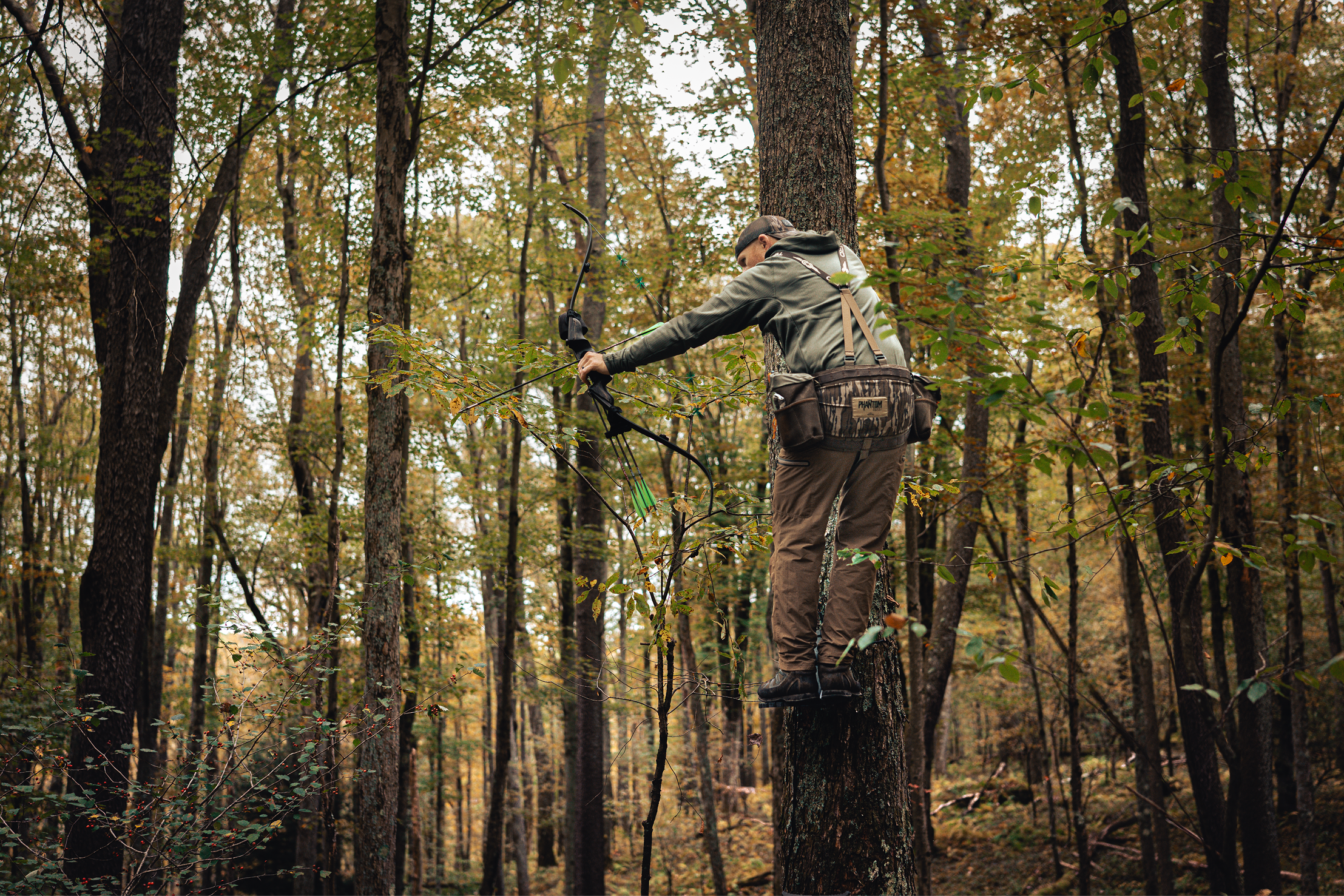 Saddle hunting is an efficient and lightweight way to get into a tree using just a harness and a rope system that keeps you safely connected the entire time. You are not limited to perfect trees either, you can hunt from just about anything, including crooked, branchy, or gnarly trees, all while staying comfortable and secure for long sits. There is a bit of a learning curve, but it is easier than you might think. After a few tries, you will wonder why you ever lugged around a metal tree stand. It is lighter, safer, and a whole lot more enjoyable.