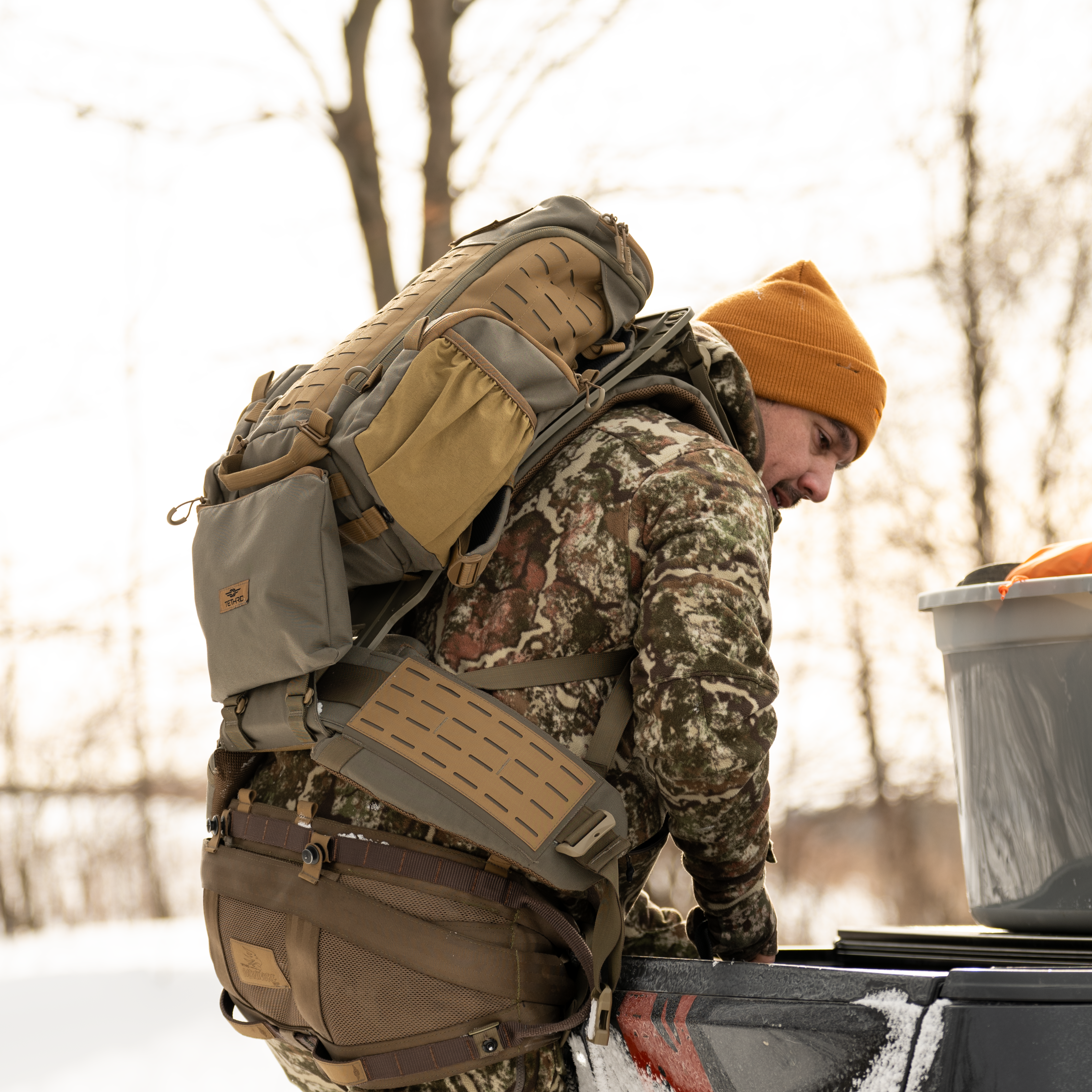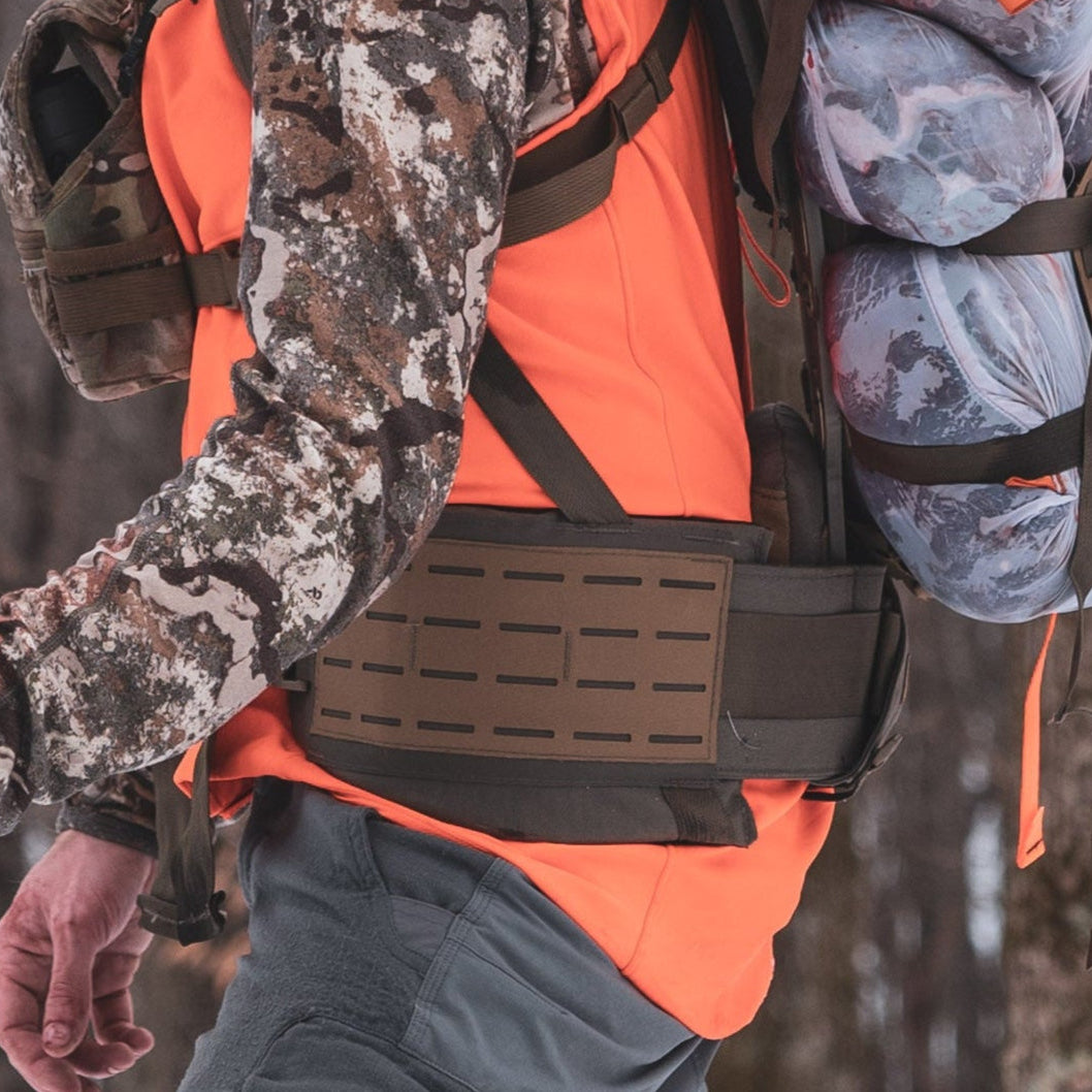 Our patent-pending adjustable waist belt, designed to fit waists from 28” to 46”, features two-stage foam padding for comfort and fit. Built for strength and adjustability, it’s perfect for hunters of all sizes. Plus, the MOLLE system allows you to attach water bottle pouches, holsters, and more for added convenience.