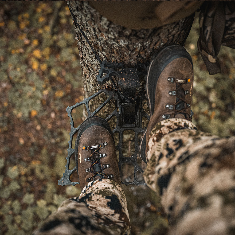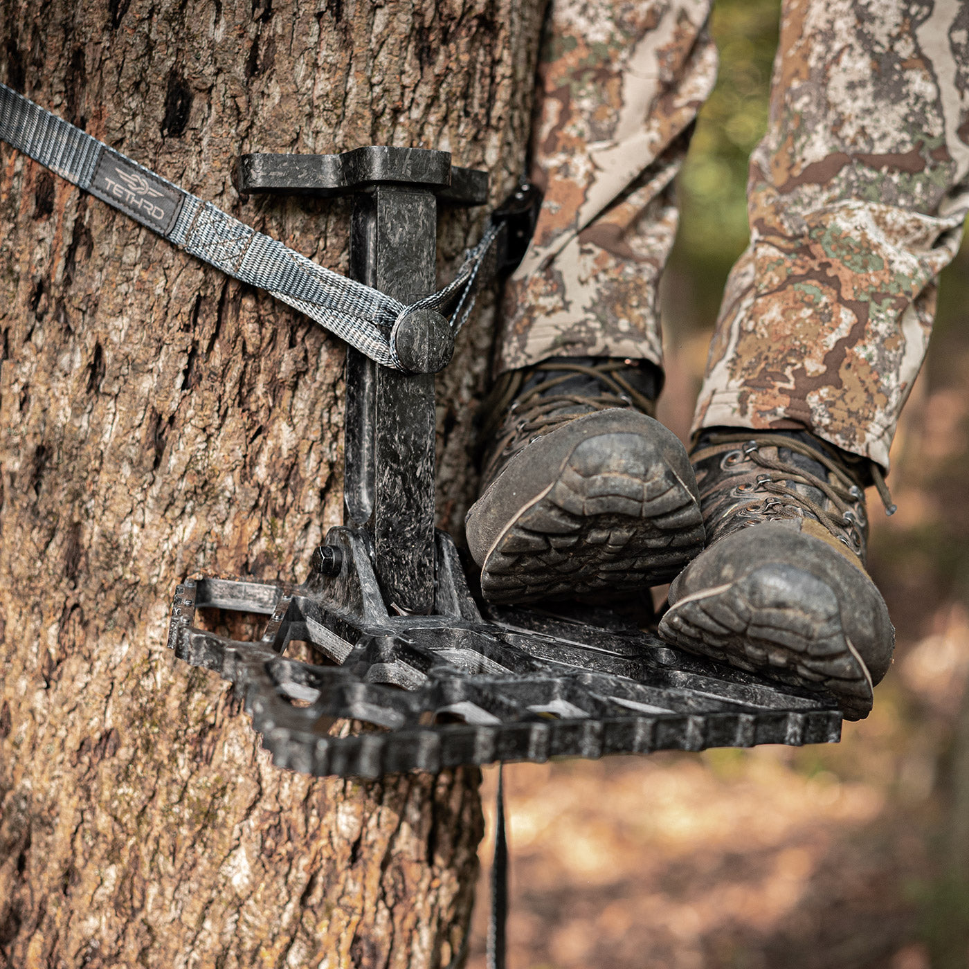 Made in the USA using Tetra CF2™ proprietary carbon fiber, the Predator CFX is our lightest and strongest platform and raises the bar for what's possible with mobile hunting equipment. Weighing just 2.3 lbs for the Regular, and 3.25 lbs for the XL, the Predator CFX will give you the extra edge you need this fall without the extra weight. Pair the regular CFX platform with a 3-pack of ultralight Tethrd ONE sticks and your climbing setup will be a featherlight 5 pounds 7 ounces.