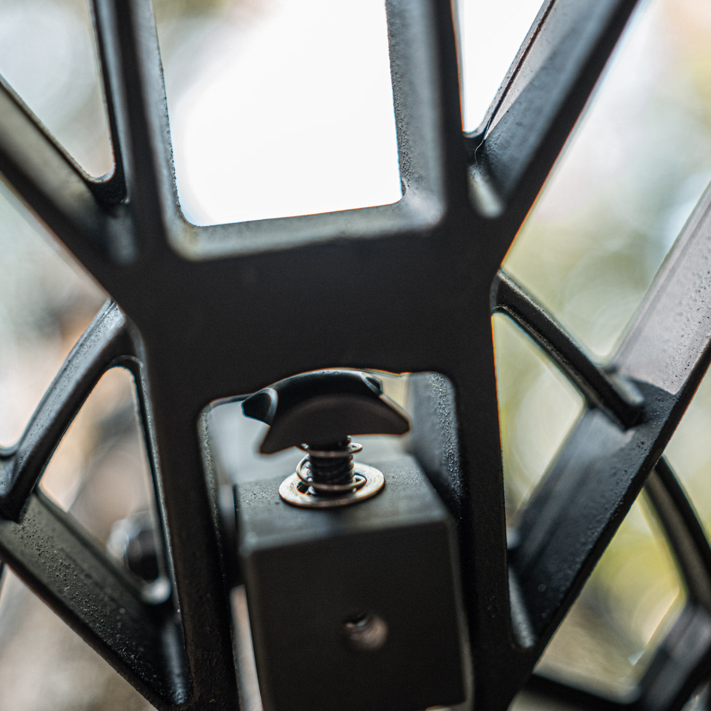 Updated tree bracket with extra traction, for more support when toe-camming and easier shots around the tree. The bracket is flush mounted onto the post, resulting in no movement or noise during use.