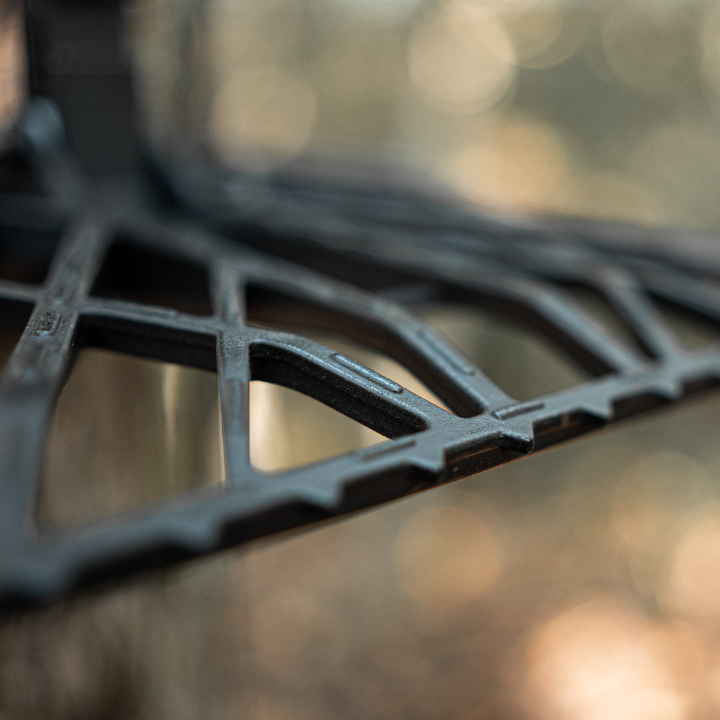 Updated tree bracket with extra traction, for more support when toe-camming and easier shots around the tree. The bracket is flush mounted onto the post, resulting in no movement or noise during use.