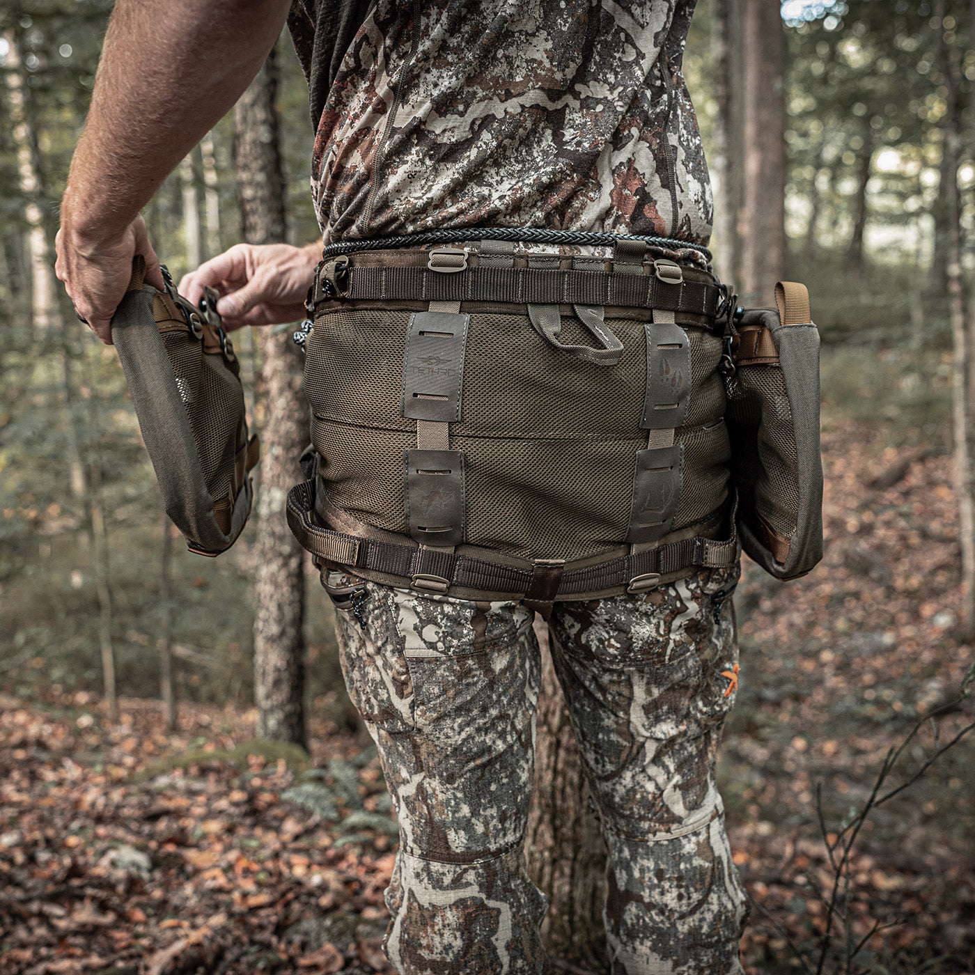 Our patented UtiliBridge™ is the king of adjustable saddle hunting bridges. No matter your waist size, our patented bridge system offers 40” of on the fly adjustability giving you the most comfortable hunting experience.