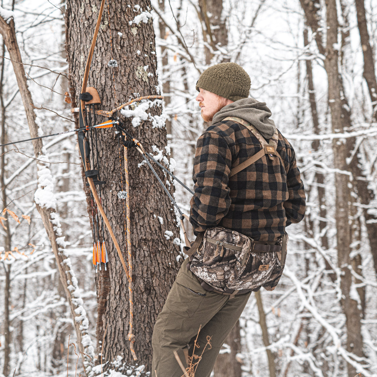 Built-in pockets that are spacious enough to hold ropes, gloves, range finders, binos, and pretty much anything else you need in the tree with you.